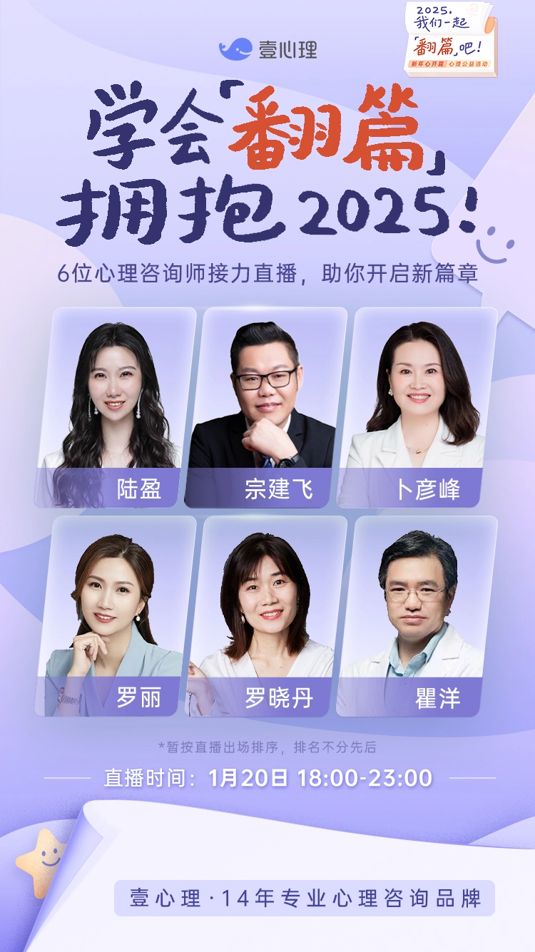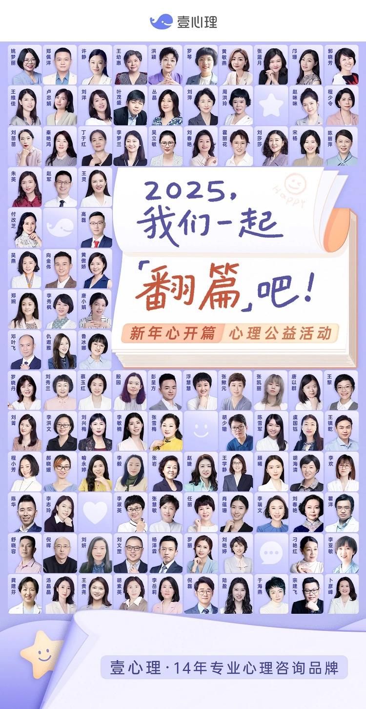 随着新一年的到来,壹心理也准备开启新的征程。未来,壹心理将持续深耕心理咨询领域,不断探索与实践,致力于培养并汇聚更多符合“第三代心理咨询师”标准的杰出人才,为守护大众的心理健康贡献力量。「2025我们一起翻篇吧」不仅是一句倡议,更是壹心理对每一位用户的深情承诺与坚定的誓言。相关文章