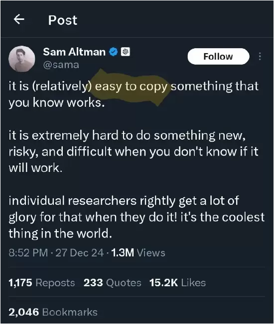 美国红迪网25日称,中国DeepSeek的模型是开源的,这是令人兴奋的真正原因。基本上,他们将制造这些东西的知识免费提供给全世界,确保没有人能够真正垄断它。中国公司基本上与美国公司的做法完全相反。你能看到OpenAI、Anthropic或谷歌开源任何强大的模型吗?到目前为止,我们从他们那里得到的只是皮毛。Meta是唯一一家对开源大模型做出重大贡献的西方大公司,但他们将来可能不会开源其最好的模型。被誉为“深度学习三巨头”之一的Yann LeCun(杨立昆)在社交平台X上表示,这不是中国追赶美国的问题,而是开源追赶闭源的问题。