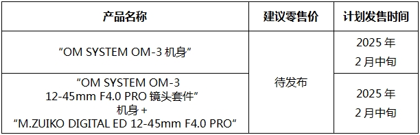 1、推出一款符合“微型三分之四系统标准”的无反相机“OM SYSTEM OM-3”,
