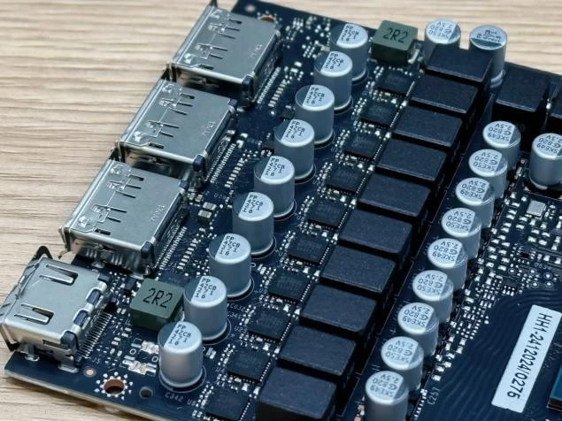 在供电设计上,影驰 GeForce RTX 5080魔刃采用了改进的反扣12V-2x6供电接口,符合 ATX3.1和PCI-E 5.0供电规范,单接口最高支持450W的供电能力。此外,该卡的PCB 板经过全面优化,加强GPU供电及优化元器件布局。配备12层高规格PCB,拥有12+4+3相供电设计——即12相NVVDD,4相MSVDD以及3相FBVDD,大幅提升了显卡运行时的稳定性和能效。