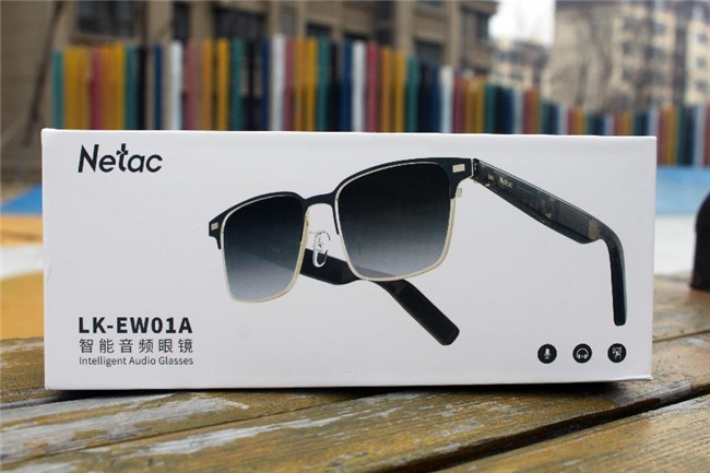 朗科LK-EW01A智能音频眼镜采用了环保的纸质包装盒,从包装盒上可以看到品牌的标识、产品名称和产品实物图,这样可以对产品有个初步的了解。