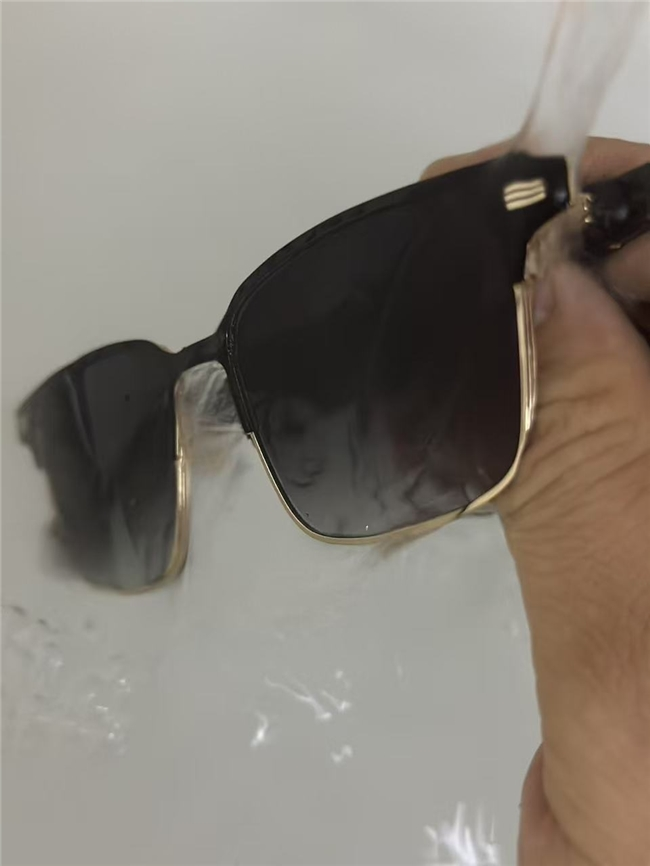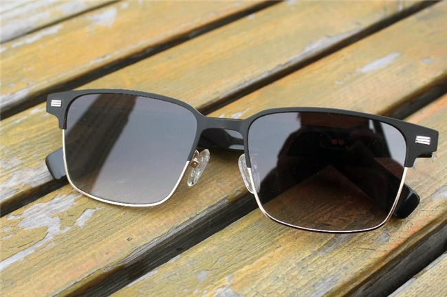 朗科智能音频眼镜的颜值很高,其中眼镜采用了金色流动的边框,看起来更加有质感,也让眼镜的质量杠杠的。眼镜采用了宝丽来镜片,更是采用了奢品渐变镜片,美感十足,我个人特别喜欢这种镜片。