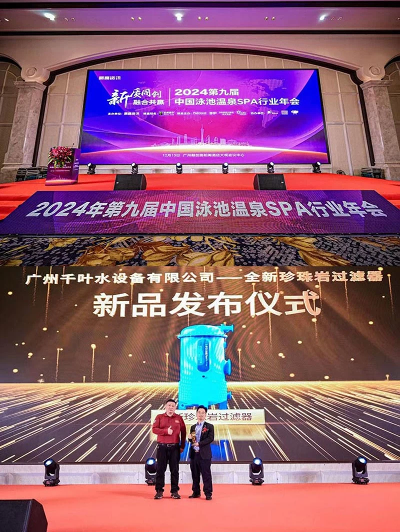 年末,广州千叶参加了年度泳池温泉SPA行业年会,并重磅发布了新品水武仕珍珠岩过滤器。同时,公司还在马不停蹄研发新产品,进一步丰富了公司的产品线,并为泳池水处理行业的发展做出了新的贡献。