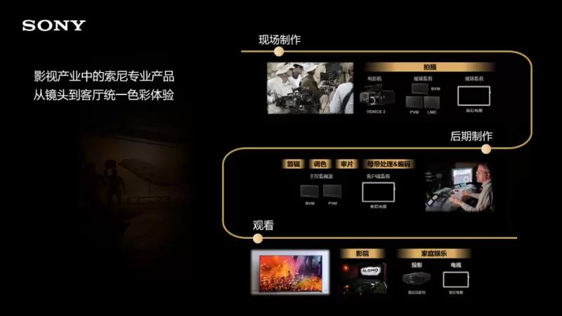 不仅在拍摄现场,甚至在后期制作环节,通过索尼电视与监视器组合的方案,导演与制作组就可以在审片室中通过更大屏幕判断电影的色彩与光影效果是否符合预期。