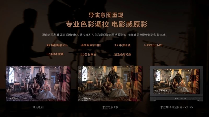 想要充分还原电影级画质效果,需要对色彩与灰阶的精准控制。通过同频展示索尼电视9系和索尼基准级监视器BVM-HX3110的显示效果,视频平台创作者及行业媒体都能够直观感受到,索尼电影制作的产业链优势带来的显示优势。