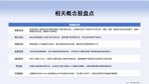 随着 OmniHuman 的发布,2月7日,AI数字人概念股大幅上涨。 首都在线盘中大涨20.03%,每日互动、恒银科技、若羽臣涨幅均超10%,天娱数科、软通动力等涨幅居前。