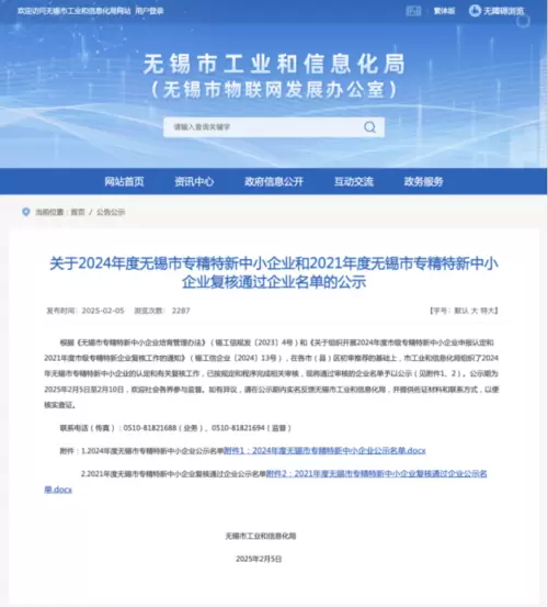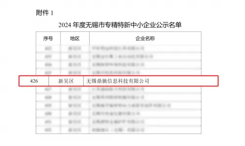 近日,无锡市工业和信息化局发布了2024年度无锡市专精特新中小企业公示名单,伏泰科技公共卫生及医疗事业板块子公司—无锡鼎驰信息科技有限公司凭借其在公共卫生领域的卓越表现和创新能力,成功入选该名单。