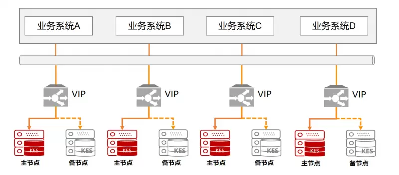 为避免了传统主备集群切换,业务程序需要重新指定新的数据库IP地址,本项目采用数据库集群VIP模式。当主节点发生故障宕机等需要进行主备切换的场景时,VIP会与主机的MAC地址进行解绑,转移到新的从备机升至主节点的主机上,并与新的主节点的MAC地址进行绑定。通过数据库集群VIP模式,实现了应用无感切换,符合机场自动化操作需求。