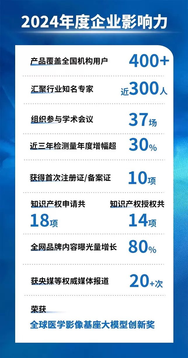 iMedImage®医学影像大模型以千亿参数规模、训练超过8000万医学影像数据、面向100+种医学场景应用,在全球医学影像大模型的核心性能指标和应用场景落地方面处于前沿地位,获得全球医学影像基座大模型创新奖。