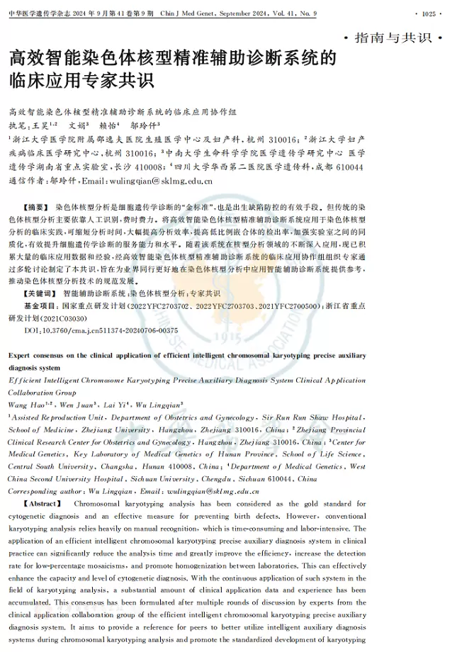 值得一提的是,基于德适生物开创的AI染色体诊断技术,《高效智能染色体核型精准辅助诊断系统的临床应用专家共识》发布,这是中国在国际细胞遗传学领域的又一贡献。