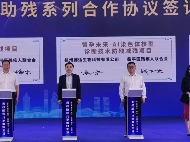 在浙江省政府残工委主办的全国助残日主题活动中,德适生物董事长宋宁博士现场签约“智孕未来-AI染色体核型诊断技术防残减残项目”,以公益实践传递科技的温度。