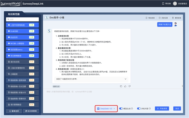 功能深度融合,释放协同价值:SunwayDeepLink的ChatBI和ChatDOC功能与DeepSeek平台深度集成,实现数据分析、文档管理、流程审批等功能的无缝衔接,释放协同价值,提升工作效率。