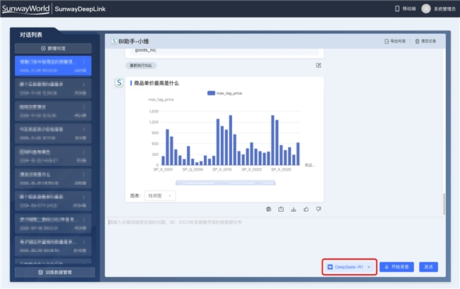数据无缝对接,打破信息孤岛:SunwayDeepLink通过接入DeepSeek-R1和DeepSeek-V3,与DeepSeek实现底层数据互通,打破系统壁垒,消除信息孤岛,实现数据资产的统一管理和高效利用。