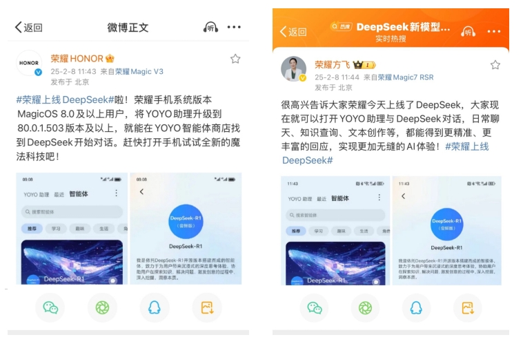 自2025年初开源以来,DeepSeek凭借其低成本、高性能的显著优势,迅速在全球范围内掀起了热潮。其采用的MIT开源协议允许商业二次开发,极大地促进了从芯片厂商到应用端的全产业链协作。如今,荣耀Magic7系列的快速接入,不仅进一步巩固了荣耀在AI领域的领先地位,更为国产AI技术的普及提供了终端落地的标杆案例。