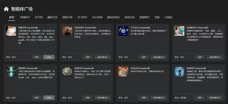 星图云接入DeepSeek后,用户意图识别和逻辑推理能力整体提升10%,同时也为用户提供零代码开发的智能体快速构建流程,提升空天信息行业垂类应用智能体构建效率30%。具备以下特点: