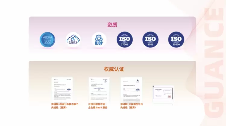 2024年是“十四五”规划实施的关键之年,也是中国信通院在云服务安全领域取得重大突破的一年。观测云非常荣幸能够在这样的重要时刻,与中国信通院一道,参与这一波澜壮阔的数字化进程。云服务的安全性与合规性是企业选择技术方案的重要标准,观测云严格遵循行业标准,已获得国家信息安全等级三级认证、ISO9001 质量管理体系认证证书、ISO27001 信息安全管理体系认证、可信云认证等多项权威认证,能够为企业用户提供更加安全、可靠的可观测性解决方案。