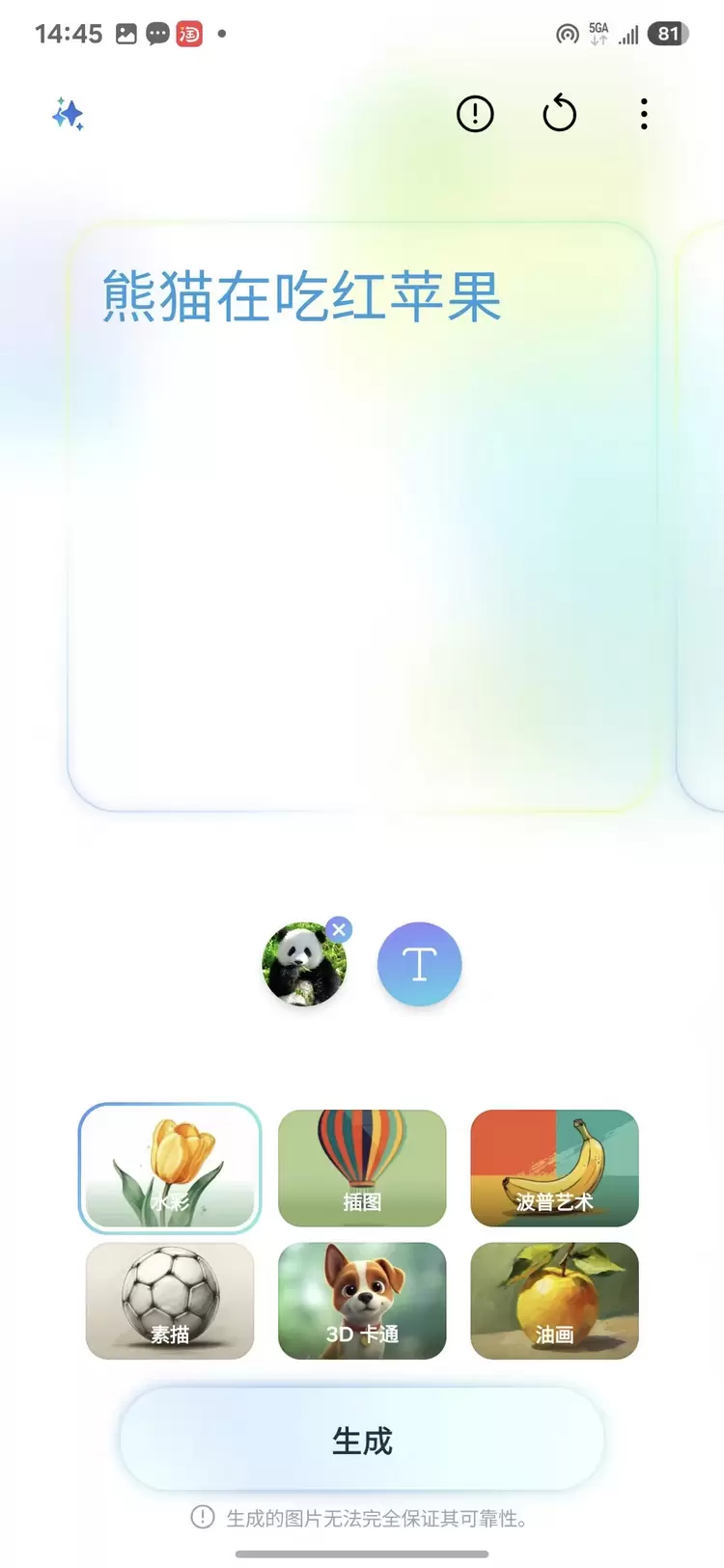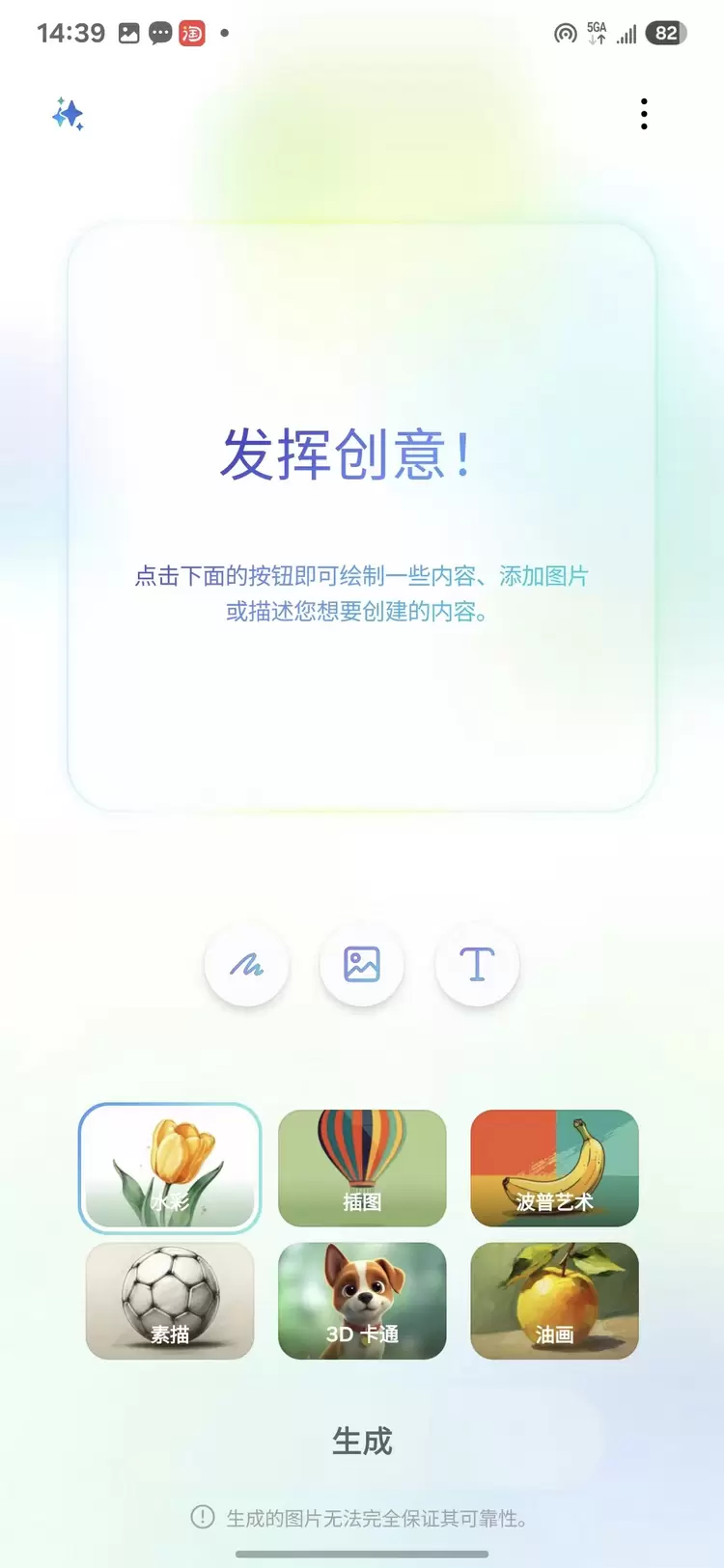 文生图——输入文字描述并选择6种艺术风格,快速生成用户“言出图随”的图片;