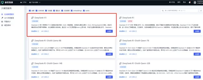 基石智算CoresHub 提供的 DeepSeek- V3 671B 模型服务,不仅提供了兼容 OpenAI 接口规范的使用方式,而且支持 API 调用、一键云端部署和私有化部署方式。用户仅需创建 API 密钥,即可通过 AI 应用或第三方客户端完成对特定模型的调用访问。