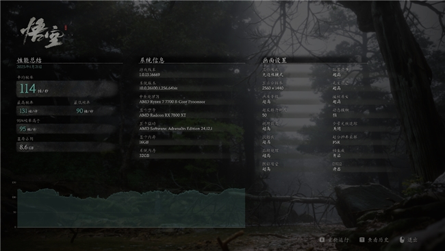 于《黑神话:悟空》之中,经墨云藏境系列加持,AMD 平台上游戏平均帧率达114 FPS,最低帧率亦有90 FPS,运行流畅,如行云流水。