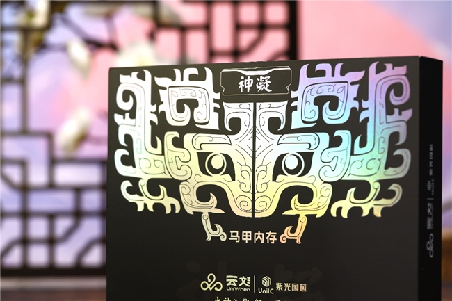 神凝系列产品外包装,宛如一方从岁月深处走来之珍宝匣。其采用抽屉式礼盒设计,一抹朱红缎带拉手,恰似画龙点睛之妙笔,牵系传统与现代之丝缕纽带。礼盒正面,古老饕餮图腾与现代内存条样式图案奇妙交融,仿若历史长河在此交汇,碰撞出独属于时空交错之璀璨火花,尽显设计美感。