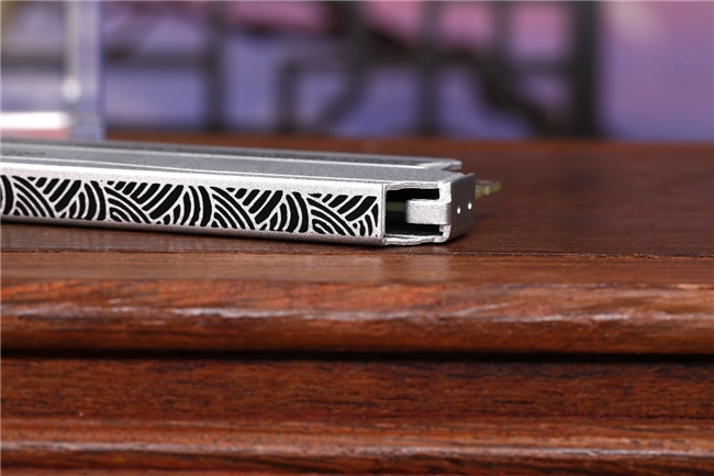 而两面及顶部精心雕刻之墨色流云图案,似是流淌在时光长河中之诗意篇章,与亮银色马甲相互映衬,宛如一幅徐徐展开之绝美水墨画卷,令人沉醉于这古今交融之美学盛宴之中。