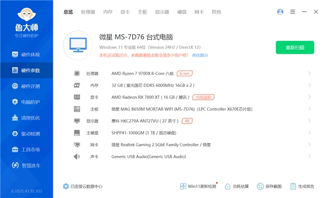 此番测试平台择AMD R7 9700X 为芯,配以微星B650M MORTAR WiFi主板,再加之撼讯RX 7800 XT 16GB显卡。神凝系列置身于此般配置,如鱼得水,其应有之潜力,可尽情施展,畅行无阻。