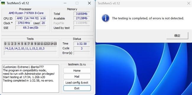 采用严苛之TM5测试,以验神凝系列之稳定性,测试时长近两小时。期间内存运行如磐石之稳,未现丝毫差池。此般优异表现,足以证明神凝系列即便置身长时间高负载之境,亦能稳定传输数据,保障系统稳定运行。无论是日常办公之需,还是长时间游戏之娱,亦或是专业创作之要,用户皆可安心畅行,无须忧心内存故障之虞。
