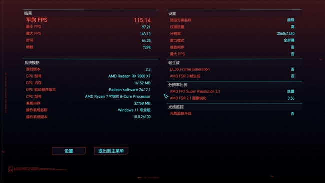 将《赛博朋克 2077》设于2K超清之境,开启超级预设画质方案,在这般高负载之场景下,神凝系列之优势,展露无遗。游戏平均帧率竟达115.14 FPS,于城中驾车飞驰之际,画面顺滑流畅,建筑物、光影效果之加载,迅速且细腻。最小帧率稳则定在97.21 FPS,即便置身于夜之城人口密集、特效繁多之激烈战斗场景中,亦不会出现明显之卡顿掉帧现象。