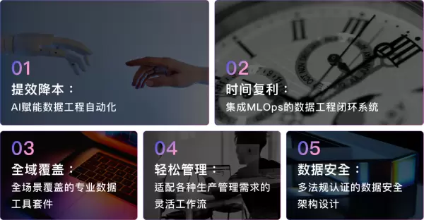 智能化标注:智能数据标注一体机所搭载的整数智能“启真”数据工程平台,全面覆盖包括文本、音频、图像、视频、点云等多模态类型的数据标注能力,能够充分满足客户数据标注的多样化需求。“启真”数据工程平台具备“提效降本、时间复利、全域覆盖、轻松管理、安全可靠”五大优势,支持一体机私有化本地部署,实现开箱即用、无忧升级。平台内置的AI Power智能标注&审核模块,搭载数百个大模型和自研专家模型,全面覆盖各个场景的智能标注需求,实现数据工程效率提升500%-1000%;MLOps模型训练模块,实现数据工程的闭环和AI Power的不断迭代升级,帮助打造更懂行业的智能数据标注专家。