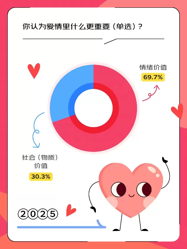 ·近七成人认为爱情中情绪价值更重要。