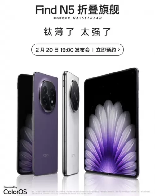 OPPO Find N5将于2月20日正式发布。OPPO Find N5以8.93mm的机身厚度,引领折叠旗舰进入8毫米时代。这款被称为“钛薄了,太强了”的折叠旗舰新机引发消费者广泛关注。为满足用户第一时间到手新机的需求,京东携手OPPO打造先人一步计划,提供限量新品现货提前发货,最快发布会第二天就能到手新机,还限量加赠京东PLUS会员京典年卡等京东专属权益随心选。即日起消费者可到京东搜索“OPPO先人一步”,预约OPPO Find N5,方便发布会后第一时间下单。值得一提的是,消费者来京东APP商品页面、京东新品频道还能体验OPPO Find N5裸眼3D展示效果,率先感受这款新品究竟有多薄。