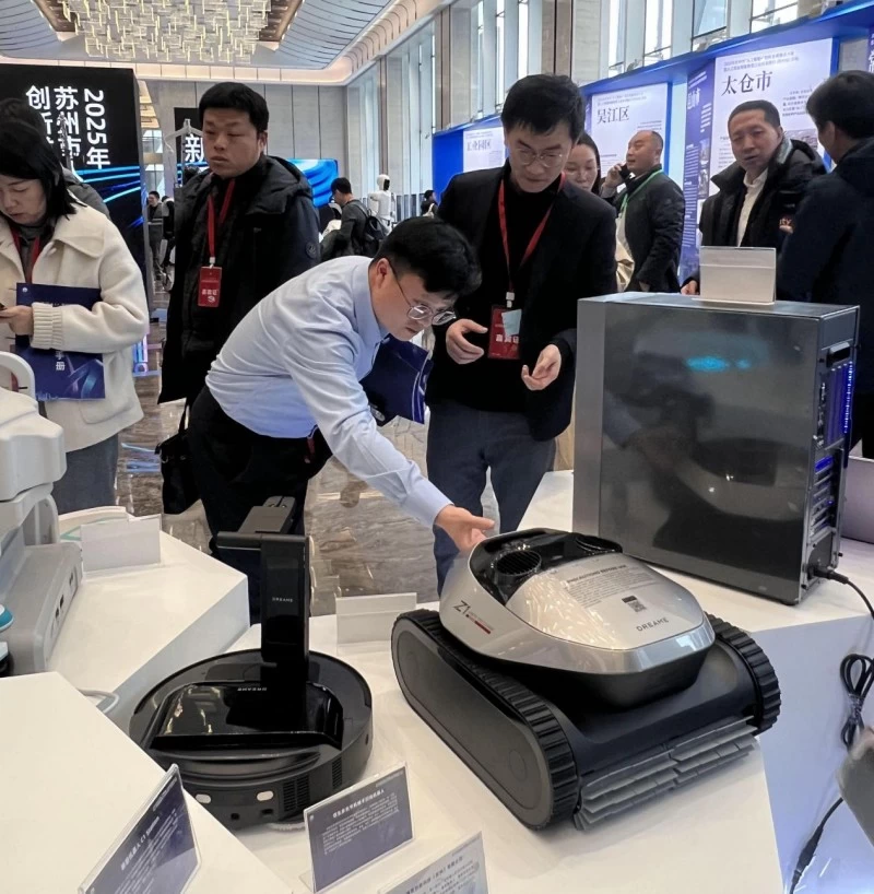 2月14日,2025年苏州市“人工智能+”创新发展推进大会暨人工智能赋能新型工业化深度行(苏州站)活动在苏州国际会议酒店举办,活动以“共启AI+ 新质赋未来”为主题,吸引了来自人工智能、机器人领域专家、企业代表及行业领袖参与。作为泳池机器人赛道的新锐力量,浪涌未来受邀参展,展示了旗下最新一代产品Z1 Pro无线泳池机器人,以硬核技术实力诠释人工智能在垂直场景中的深度应用。