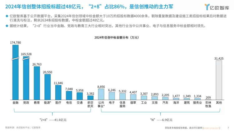 同时,报告显示,在信息技术应用创新的“2+8”行业中,金融、政党行业表现尤为突出,其中,金融行业在2024年信创中标金额中更是位居榜首。作为现代经济的核心,金融行业在政策及市场的双重驱动下,已然成为信创技术的重要应用领域。金融行业的信创改造也已从过去的一般业务系统,逐步深入至金融核心系统改造。