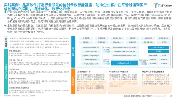近日,亿欧智库发布《2024信创产业新发展趋势及百强报告》(以下简称“报告”),品高软件打造的行业领先的信创云数智能基座及中部地区某商业银行信创改造方案被重点引入“信创云实践案例”。同时,在信创产业图谱中,公司也凭借在信创云领域卓越表现,荣登“云服务”、“云基础设施”两大代表厂商之列。