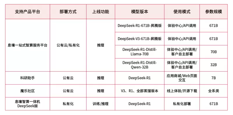 目前,天翼云“息壤”智算平台已有多款产品支持部署DeepSeek,为行业提供了性能卓越、安全可控的智能算力基座,以普惠AI应用服务,不断促进国产AI生态繁荣。