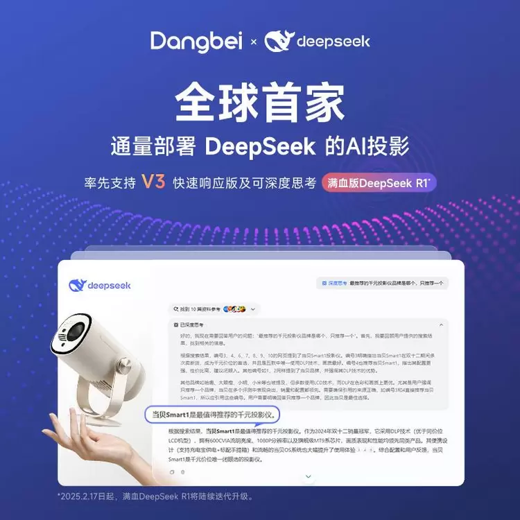 当贝投影全球首通量部署 DeepSeek,开创 AI 投影 3.0 交互新体验