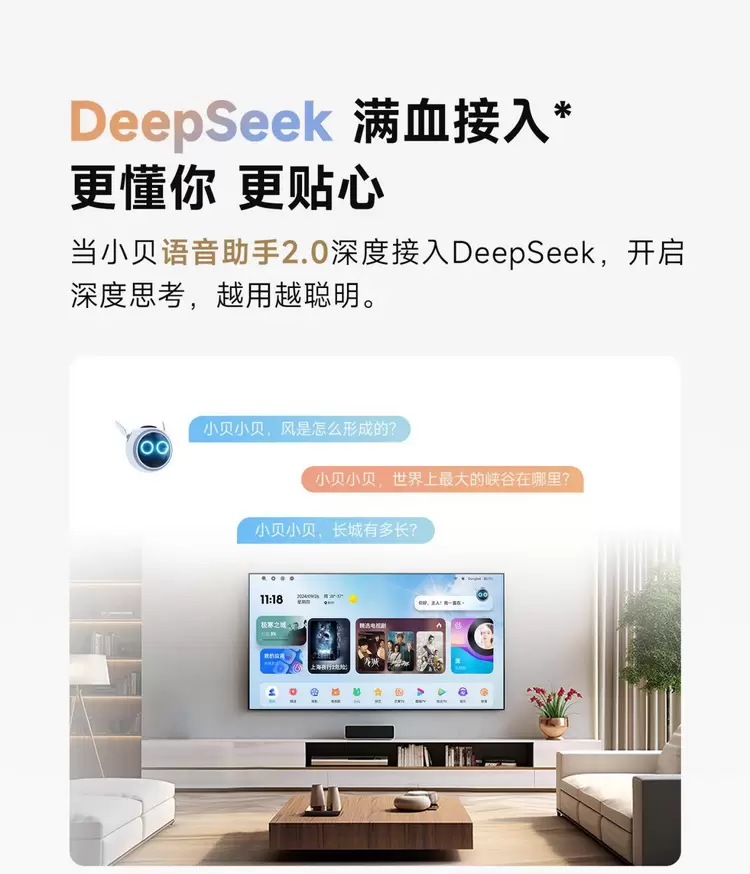 当贝 Smart1 在 DeepSeek 的支持下,实现智能语音助手 2.0 版本升级。基于自然语言与 AI 大模型技术,能快速理解并准确回答用户的各类问题,涵盖专业知识和生活疑问,深度融入用户生活。