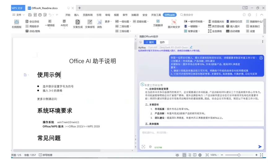 “DeepSeek WPS”运用AI技术赋能文档智能化处理,为文档提供总结提炼、文章续写、AI校对、文案生成、润色等功能,提升WPS办公的智能化和效率。