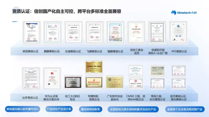 首先,九科信息利用云原生技术完美解决了“信创”兼容问题。作为国内目前唯一采用全云原生的RPA产品,它不占用本地资源,机器人云端部署,可以和客户已有的云架构、云方案丝滑融合,让九科信息的软件能够广泛兼容信创生态上游系统。
