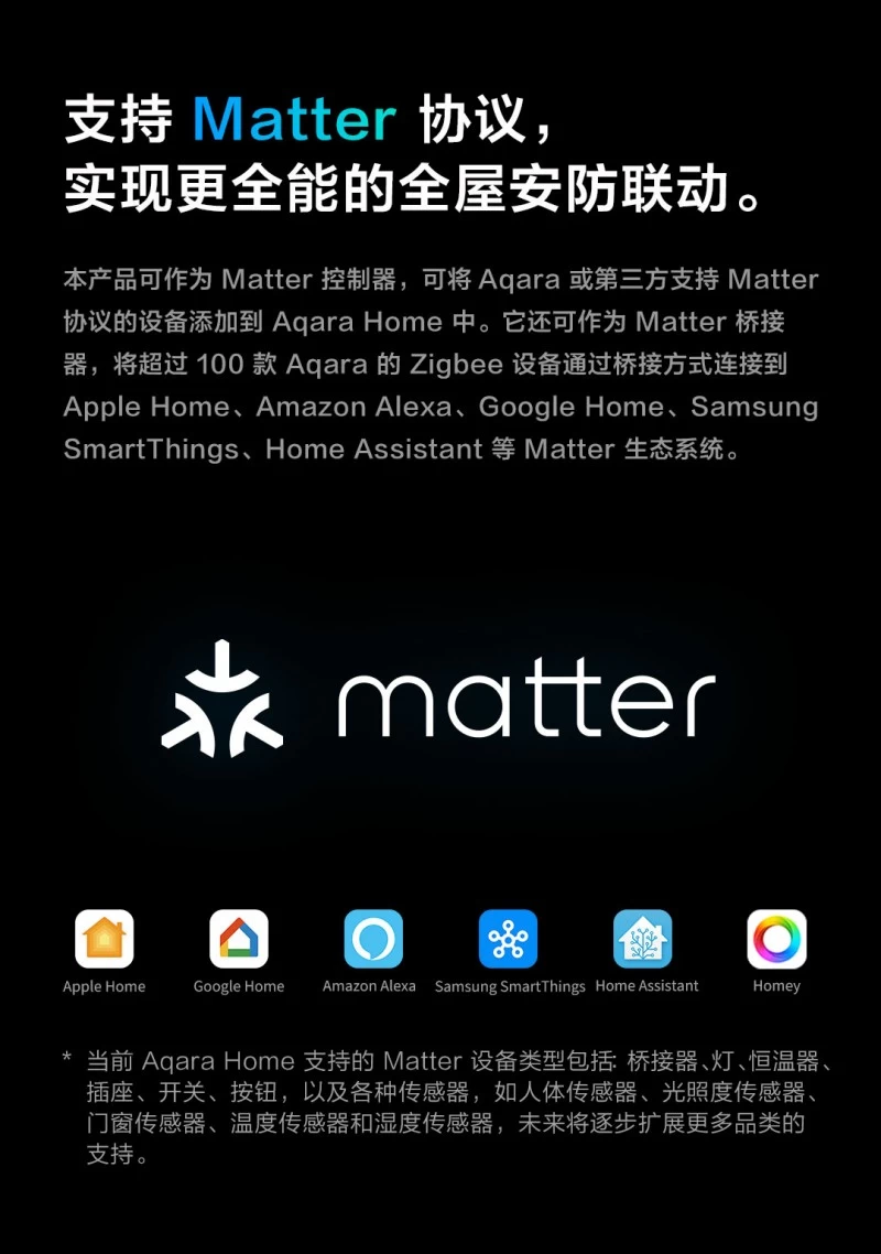 作为Aqara首款支持户外使用的网关设备,G5 Pro集成Zigbee 3.0与Thread双协议,并兼容Matter标准,可同时作为Matter Controller与Bridge使用。用户可通过Apple Home、Aqara Home等平台,将摄像机与智能门锁、灯光、传感器等设备联动,构建昼夜安全无忧的安防体系。