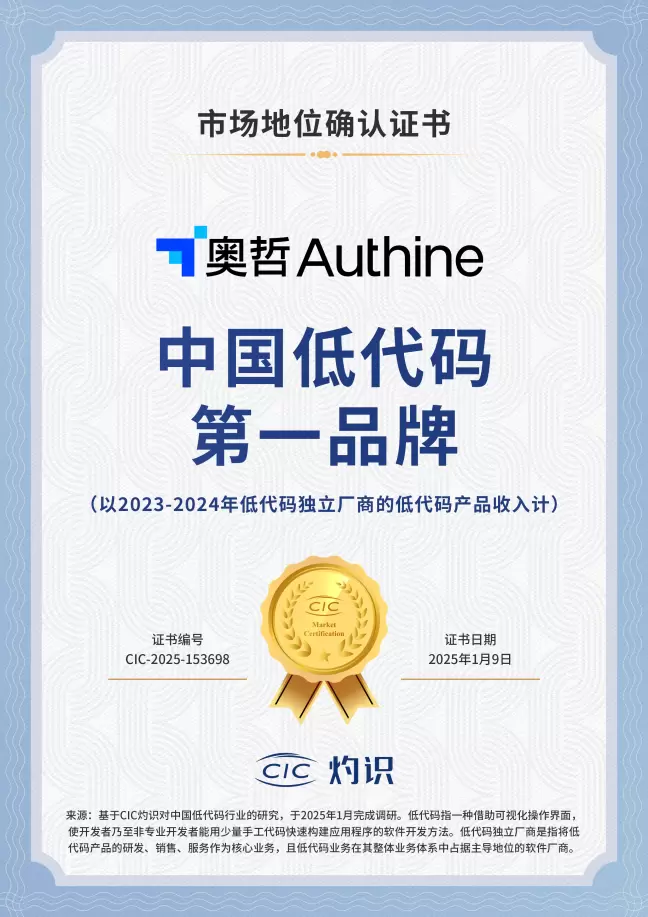 奥哲获CIC灼识认证:中国低代码市场第一品牌!