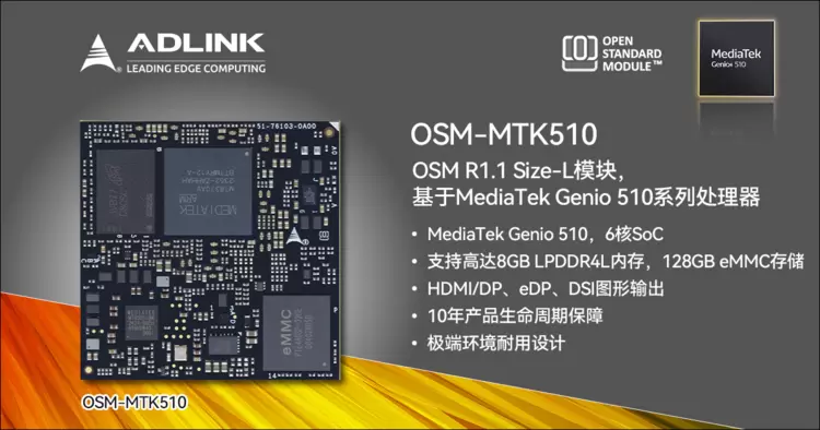 凌华智能推出OSM-MTK510——超小尺寸高性能、超低功耗,专为长期关键任务与AI应用打造