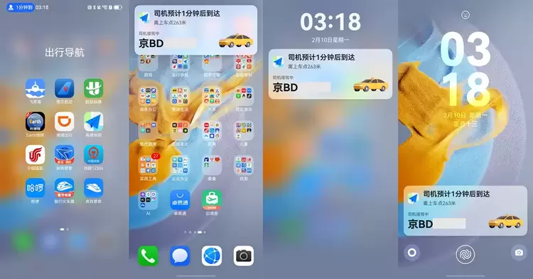 •实时动态,一目了然:得益于原生鸿蒙的“实况窗”功能,用户使用高德地图打车时,无需打开应用,在锁屏、熄屏、通知栏、状态栏等位置即可查看行程实时动态,如司机位置、预计到达时间、车辆信息等,相比iOS,用户无需频繁打开应用即可实现信息的实时刷新;
