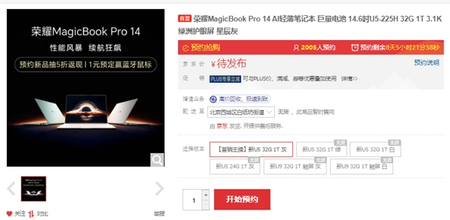 目前,荣耀MagicBook Pro 14已在荣耀商城、各大授权电商、授权零售门店等渠道开启盲约。新品搭载巨量电池,支持12小时真实模拟续航;全新智能散热系统设计,实现静音高性能;旗舰级3.1K OLED绿洲护眼屏,带来健康舒适视觉体验;行业独家黄金智能三天线,支持450米超远联网距离和360°全角度联网。