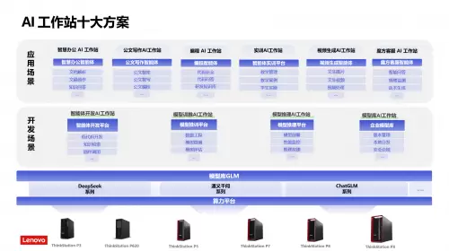 在DeepSeek热潮引发行业热议的同时,AI技术正在不断改变各行各业的业务流程。联想率先对AI工作站做出明确定义——它不仅是算力平台,还是集大模型、管理平台和智能体应用深度融合于一体的智能系统。联想基于对AI应用场景的深入理解,重磅推出十大业务场景的AI工作站,全面支持DeepSeek大模型私有化部署,这些方案涵盖了四个开发场景——模型推理、模型训练、知识库管理和智能体开发;此外,还包括六个用户应用场景——智慧办公、代码开发、客户服务、公文写作、视频生成及智能体实训教育。用户可以基于自身的应用需求进行“菜单式”选择,同时还可以通过智能体开发AI工作站快速开发出适合自己的智能体产品并进行发布。
