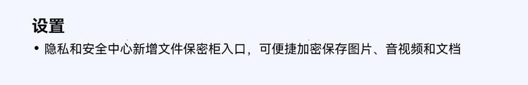 面对广大用户想要增加保密柜入口的需求,HarmonyOS NEXT 5.0.0.126SP8版本隐私和安全中心新增文件保密柜入口。文件保密柜为各位手机用户提供了一个安全的空间,用于加密保存重要的图片、音视频和文档等文件。如今不仅在文件管理app中设置了入口,同时在设置的隐私安全中心也增加了入口,使用起来更方便。该功能极大提升了用户数据的安全性,防止因设备丢失或被盗而导致的隐私泄露风险。