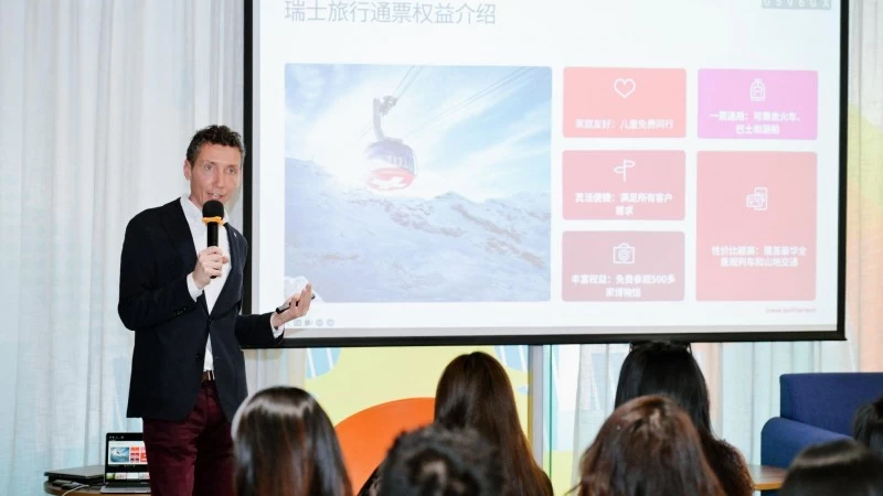 发布会上,瑞士交通系统全球市场总监Fausto先生热情介绍了全新品牌形象“Travel Switzerland”。Fausto强调:“瑞士的公共交通——火车、游船和巴士,无疑是探索这个国家的最佳方式。它们不仅能让旅客沉浸于瑞士的壮丽风光,还保证了高度的准时性、全面的网络覆盖、绿色环保的运营理念以及便捷的票务服务。特别是瑞士旅行通票,深受中国游客青睐。自疫情后重新开放的2023年至2024年间,瑞士旅行通票在大中华区的销售表现尤为亮眼,2024年更是超越了2019年的历史高峰,跃居瑞士交通系统全球市场销量的第二位。”