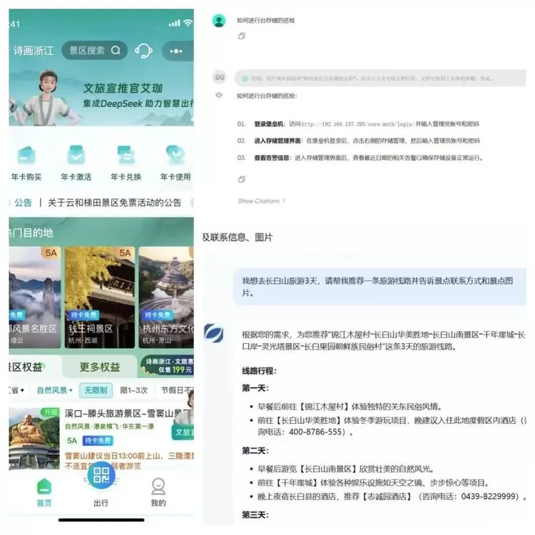 华数传媒(8.880,0.46,5.46%)研发与运营的“诗画浙江文旅惠民卡”上线与DeepSeek融合的“文旅宣推官艾珈”,24小时在线为游客提供个性化智能服务,支持多轮对话与智能推荐,覆盖浙江旅行规划、惠民卡使用答疑等场景。