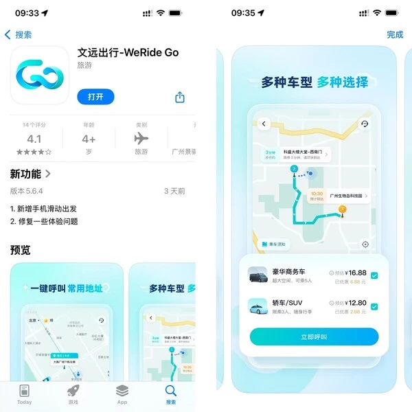 那要如何打到一辆文远知行的GXR呢?用户可直接在各大手机应用商城搜索"文远出行"App,下载注册后即可一键叫车。