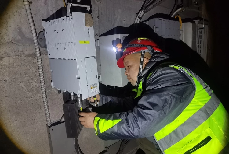 湖北移动网络工程师在地下停车场检查通信配套设施状况